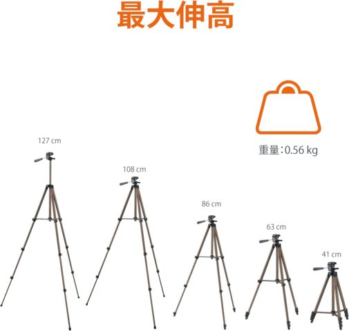 こちらの三脚は高さが最高で127cmと、無駄に高すぎません。
