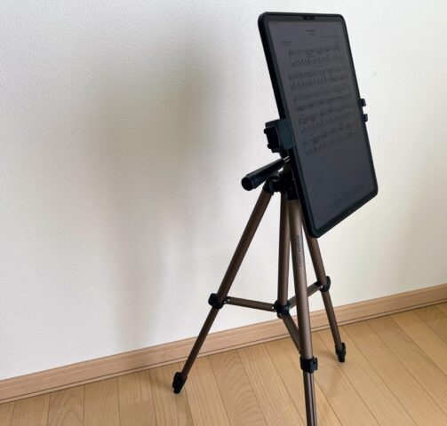 できれば楽器メーカーや楽器店が電子楽譜用に最適化された譜面台をリリースしてほしいところですが、それまではカメラ用三脚で頑張りたいと思います。