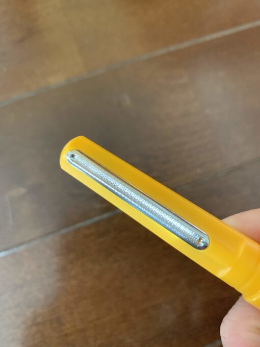 メインの刃はこんな感じです。この魔法のつめけずりの特徴として、削りかすが外に出ずに中に収納されるというものがありますが、パッと見た感じはまったく穴が開いているように見えず、なぜ中に入るのかわかりません。