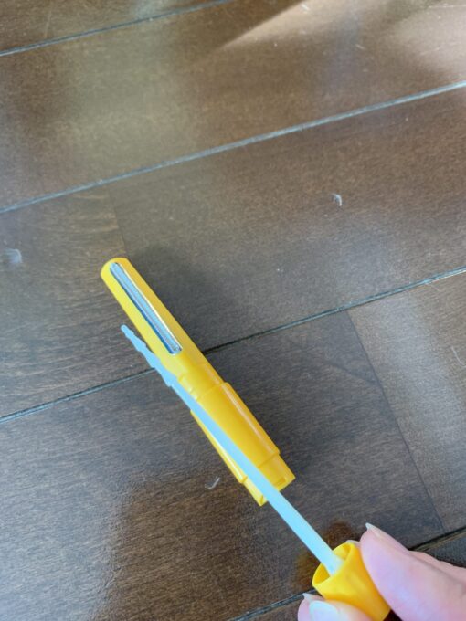 また、普通の爪やすりだと削ったかすが散らばるためゴミ箱や新聞紙などの上で削る必要がありますが、魔法のつめけずりは爪の削りかすが本体に収納されます。これも地味にうれしいところです。