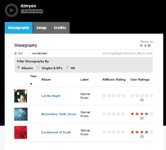 ここで所望の曲をクリックすると、その曲が収録されているアルバムが表示されます:
