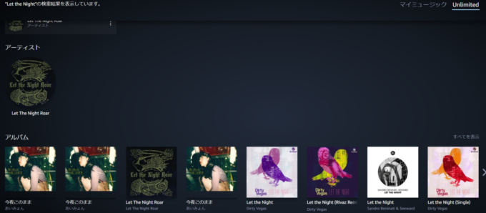 ん?”Let the Night”じゃAmazon Musicの検索で出てこないのでは?と思いきや、ちゃんと「今夜このまま」が出てきます: