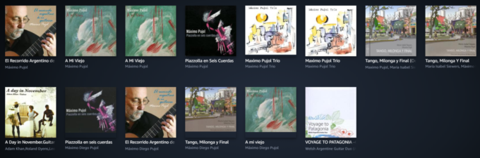 Maximo Pujol自身が演奏しているアルバムか、たまたまアルバムのタイトルなどにMaximo Pujolの名前が入っているものしか出てきません。曲ごとに作曲者の情報を入れているケースなど皆無なので出てこないのです。