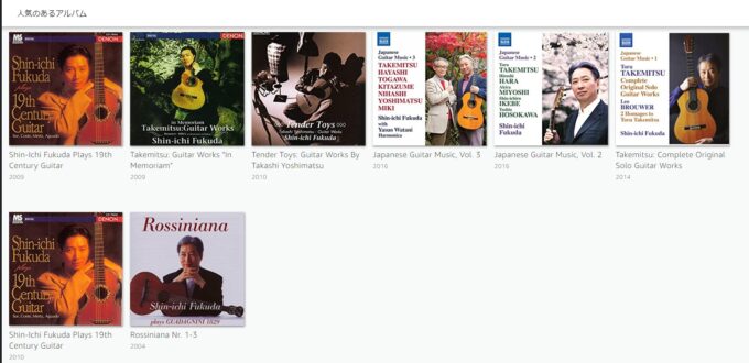 たとえば、「福田進一」で検索すると、映画「マチネの終わりに」の関連のアルバムしか出てきません: