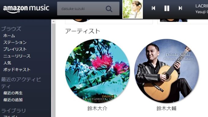 ひどいところでは、「daisuke suzuki」で検索すると「鈴木大介」と「鈴木大輔」というアーティストが出てきます。正しくは前者のはずなのですけどね。。。