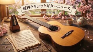 週刊クラシックギターニュース 【社会人とギタリストの両立に注目】今週のクラシックギター界注目トピック(2026年3月第1週) 新たな試みとして、クラシックギター界を中心とした最近注目のトピックを週刊でお届けしたいと思います。第1弾で一番気になったのは、現代ギターの特集である「社会人とギタリストの両立」についてです。新製品:現代ギター2026年3月号ほか今週の新製品... 2026.03.02 2026.03.08 週刊クラシックギターニュース