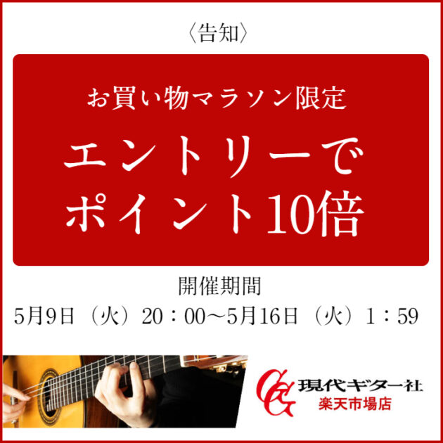 最近楽天市場に出展した現代ギターが、5/9 20:00から5/16 01:59の間に買い物をするとポイントが10倍になるセールを開催します。