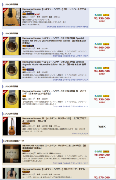私も最近ハウザー2世の楽器を購入し、3世を委託に出しています。興味がある方はぜひ。