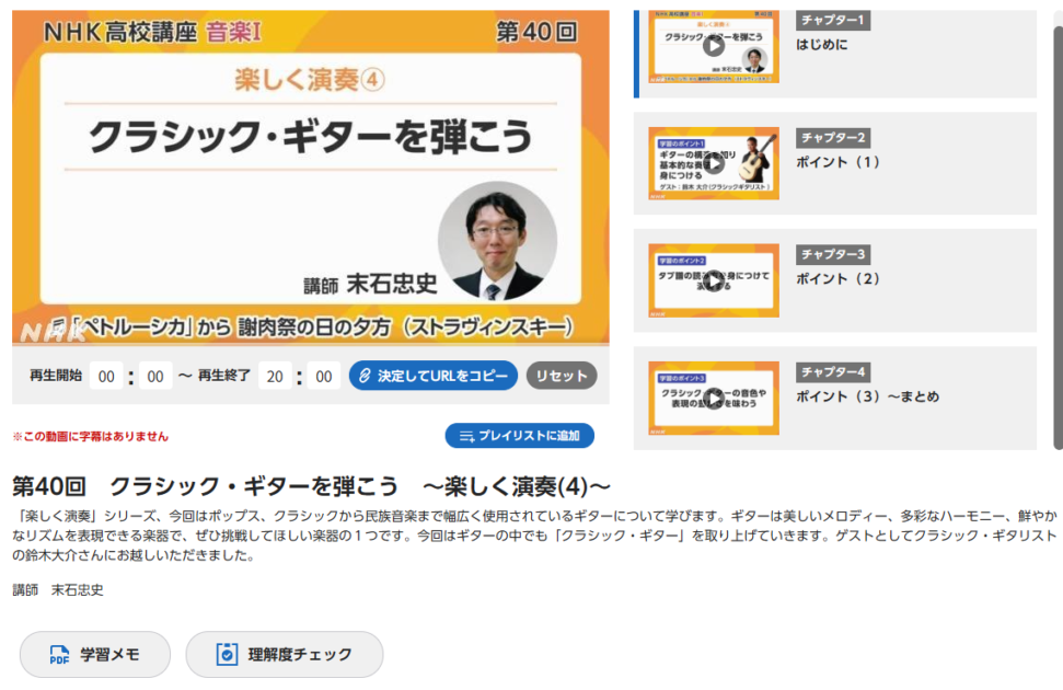 NHK高校講座の音楽Iにクラシックギターの特集が存在することに気づきました: